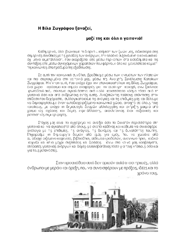 Πρώτο κείμενο του εγχειρήματος της κατειλημένου χώρου της Βίλας Ζωγράφου