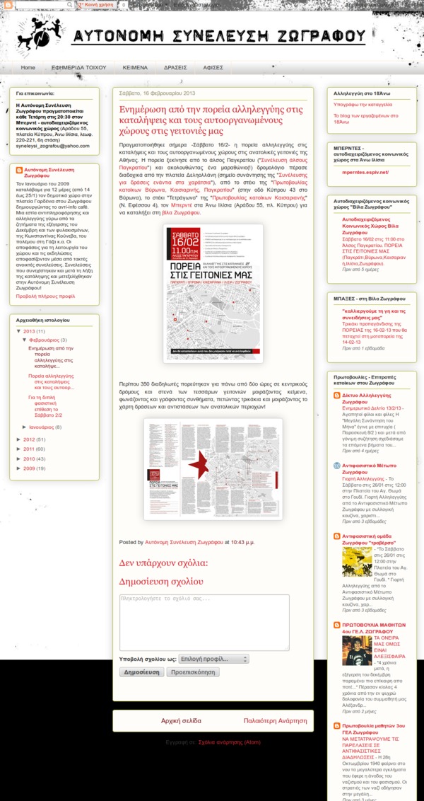 Αυτονομη Συνελευση Ζωγραφου: Ενημέρωση από την πορεία αλληλεγγύης στις καταλήψεις και τους αυτοοργανωμένους χώρους στις γειτονιές μας