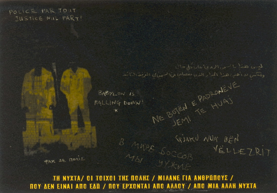 Τη νύχτα οι τοίχοι της πόλης / μιλάνε για ανθρώπους / που δεν είναι απο εδώ / που έρχονται απο αλλού / από μια άλλη νύχτα
