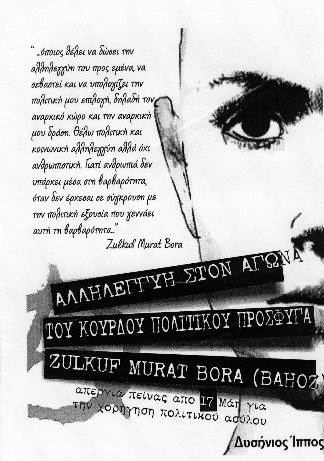 Αλληλεγγύη στον αγώνα του Κούρδου πολιτικού πρόσφυγα Zulkuf Murat Bora(Bahoz)