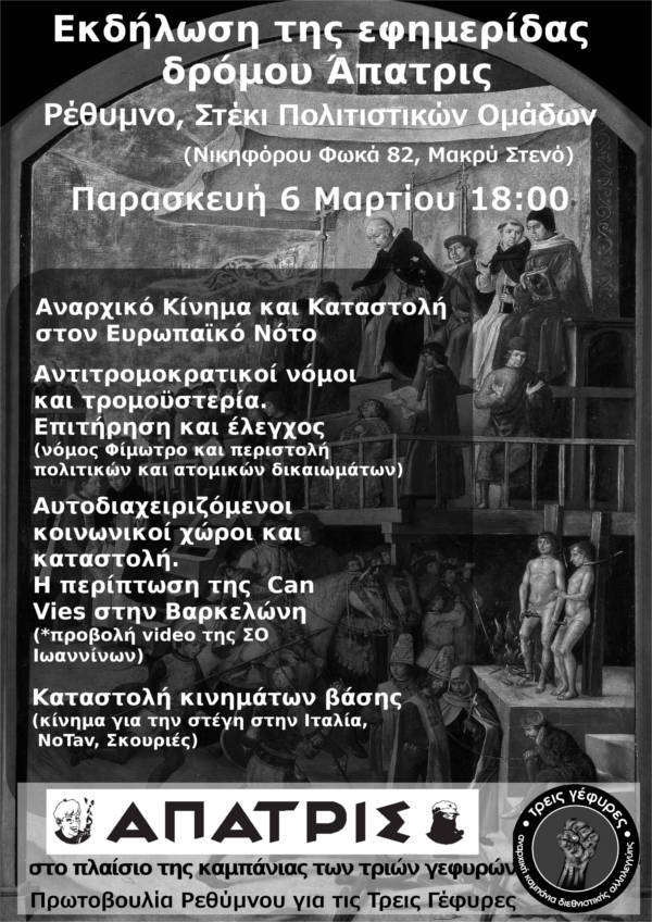 Εκδήλωση της εφημερίδας δρόμου Άπατρις: Αναρχικό κίνημα και καταστολή στον ευρωπαϊκό νότο