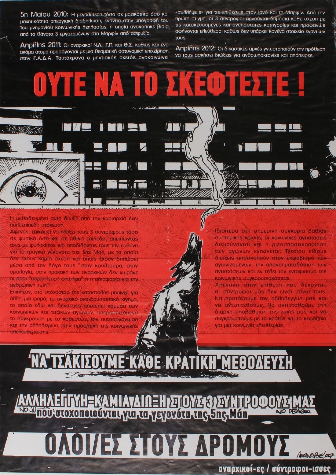 Ούτε να το σκέφτεστε!: Να τσακίσουμε κάθε κρατική μεθόδευση. Αλληλεγγύη - καμία δίωξη στους 3 συντροφους μας