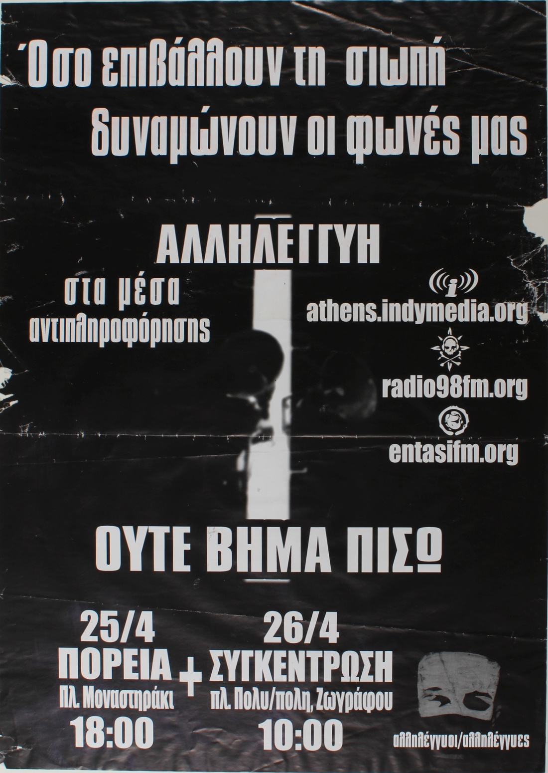 Όσο επιβάλλουν τη σιωπή δυναμώνουν τις φωνές μας: Αλληλεγγύη στα μέσα αντιπληροφόρησης athens.indymedia.org, radio98fm.org, entasifm.org