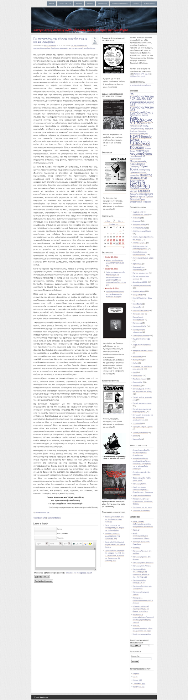 Για τα γεγονότα της 48ωρης απεργίας στις 19 και 20 Οκτωβρίου