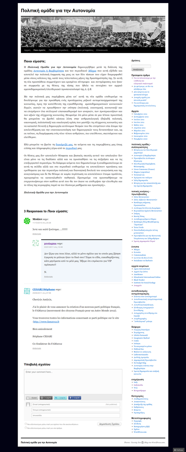 Ποιοι είμαστε; | Πολιτική ομάδα για την Αυτονομία